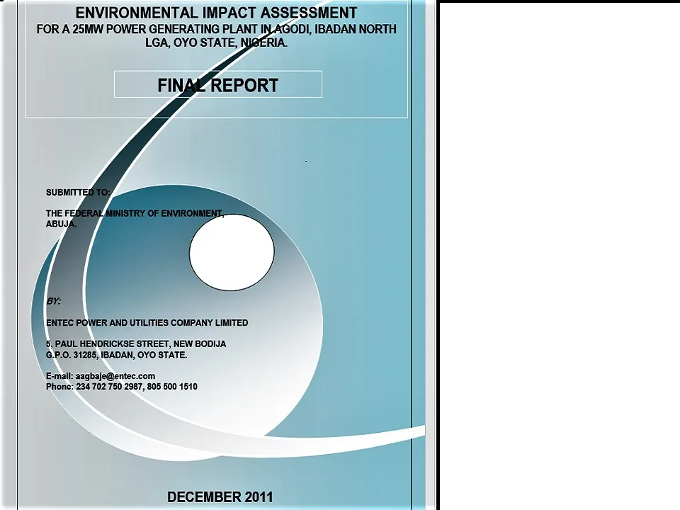The EIA was managed by Mr. Bartholomew Ndulue, presently a member of EcoPro team, on behalf of Triple 'E' Systems Associates Limited.